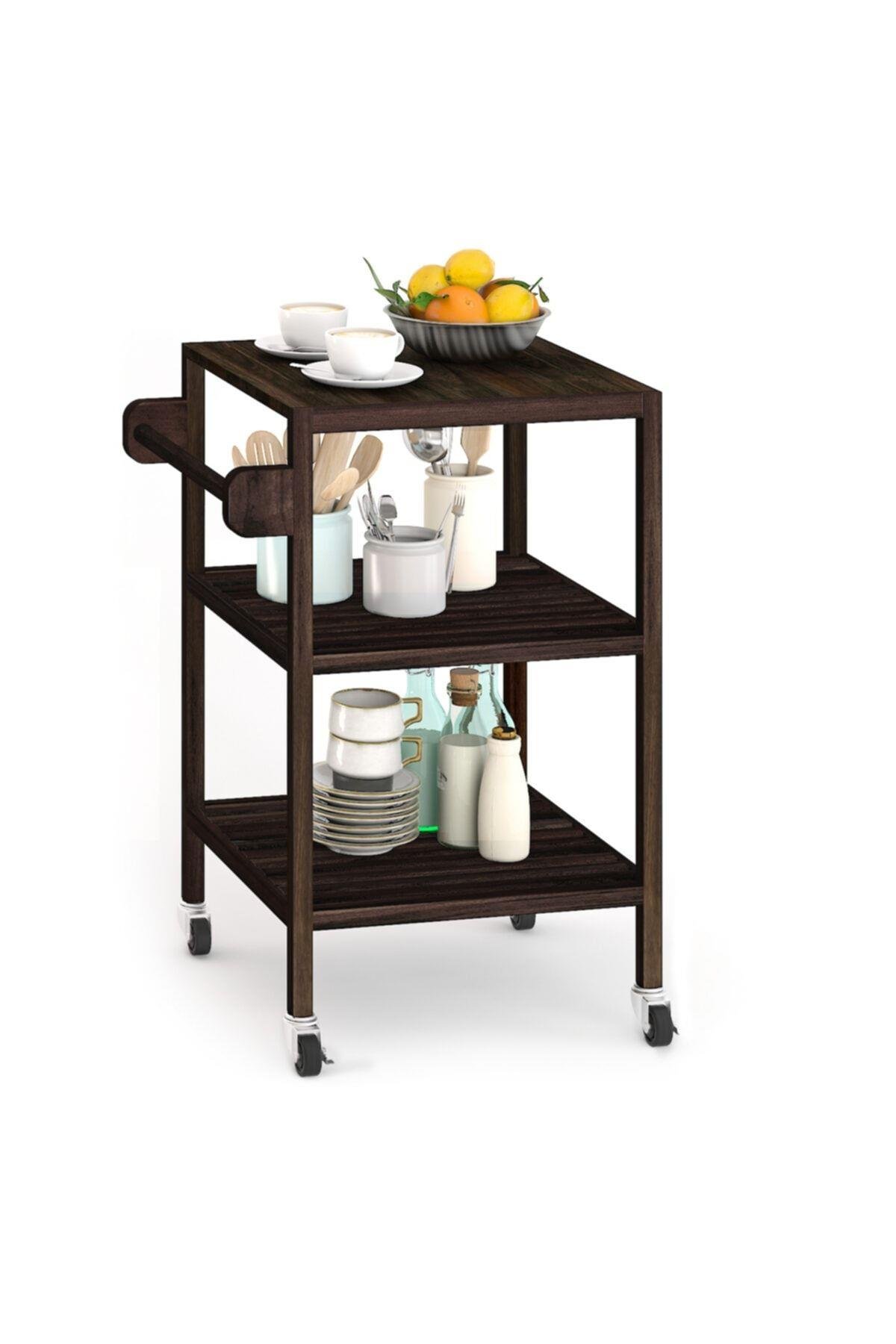 Interbuild Masif Akasya,holger Mutfak Servis Arabası,520x520x850 Mm,espresso