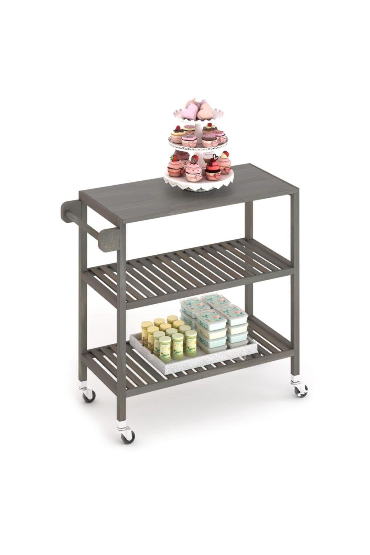 Interbuild Masif Akasya,holger Mutfak Servis Arabası,799x349x850 Mm,alaca Gri