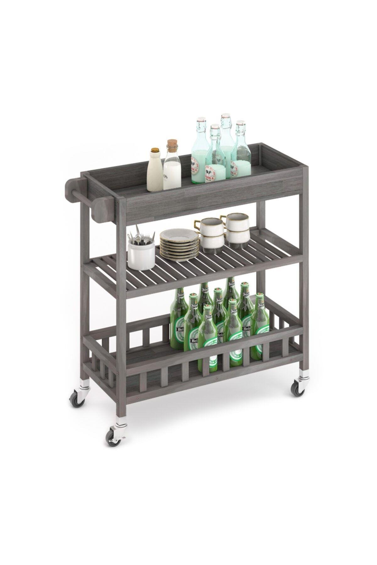 Interbuild Masif Akasya,holger Tepsili Mutfak Servis Arabası,799x349x850 Mm,alaca Gri